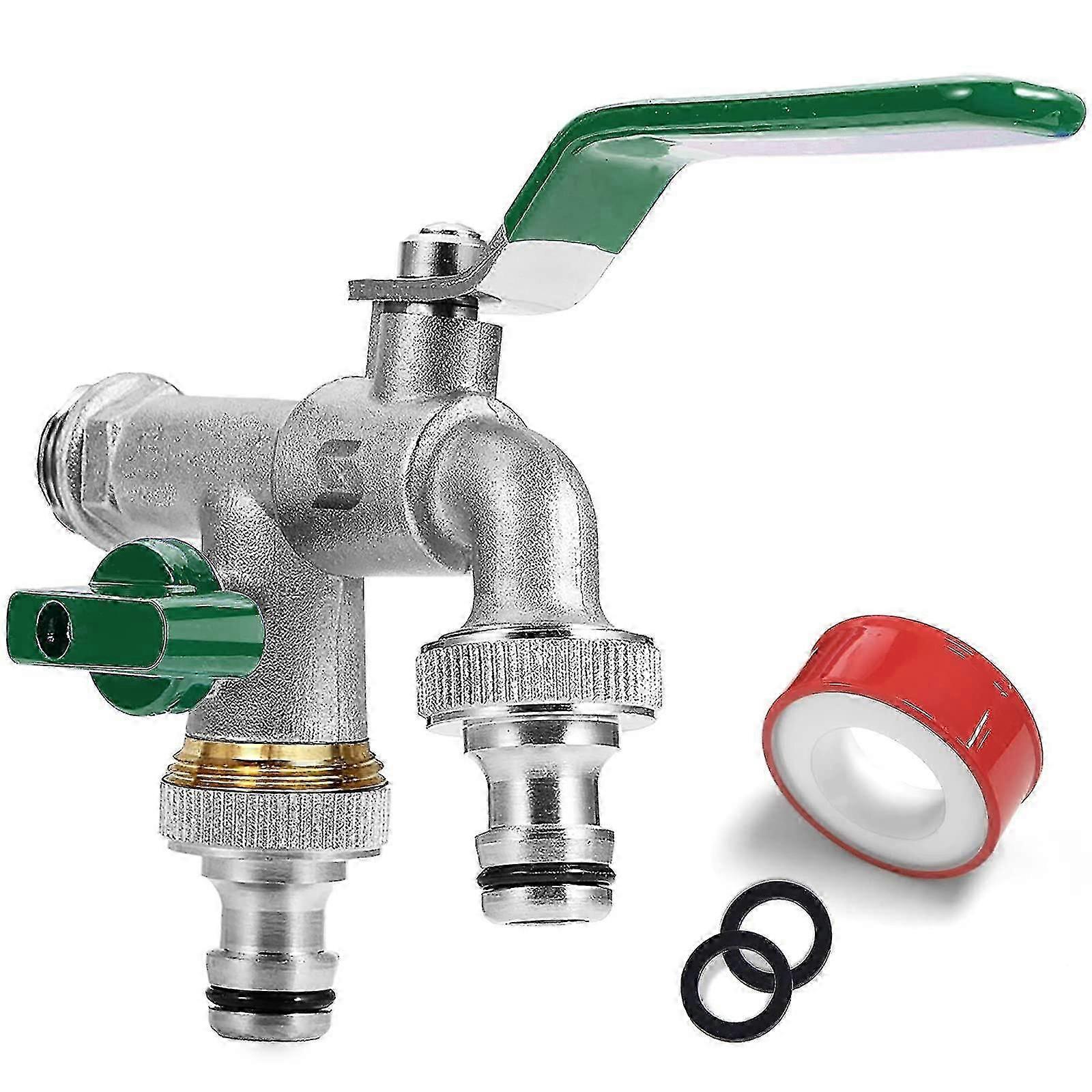 Garden Faucet, Double Outlet Tap 1/2 Inch, Ust And Frost-proof, With 2x 3/4 Inch Outlets,for Garden (green)