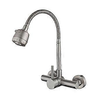 Kitchen Faucet Wall Mounted 304 Stainless Steel Sink Faucet 360 Rotatable Sink Faucet With Flexible Hose