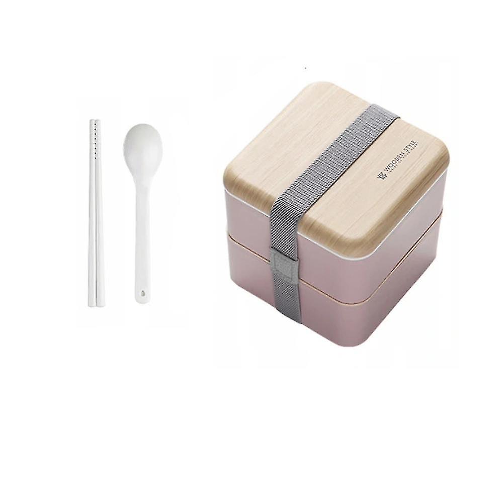 Lunch Box Food Storage 2 Square Containers, Used For Adult Chopsticks And Spoons, Bpa Wood Grain Proof Liquid Free (pink, 13.5*13.5*13cm)