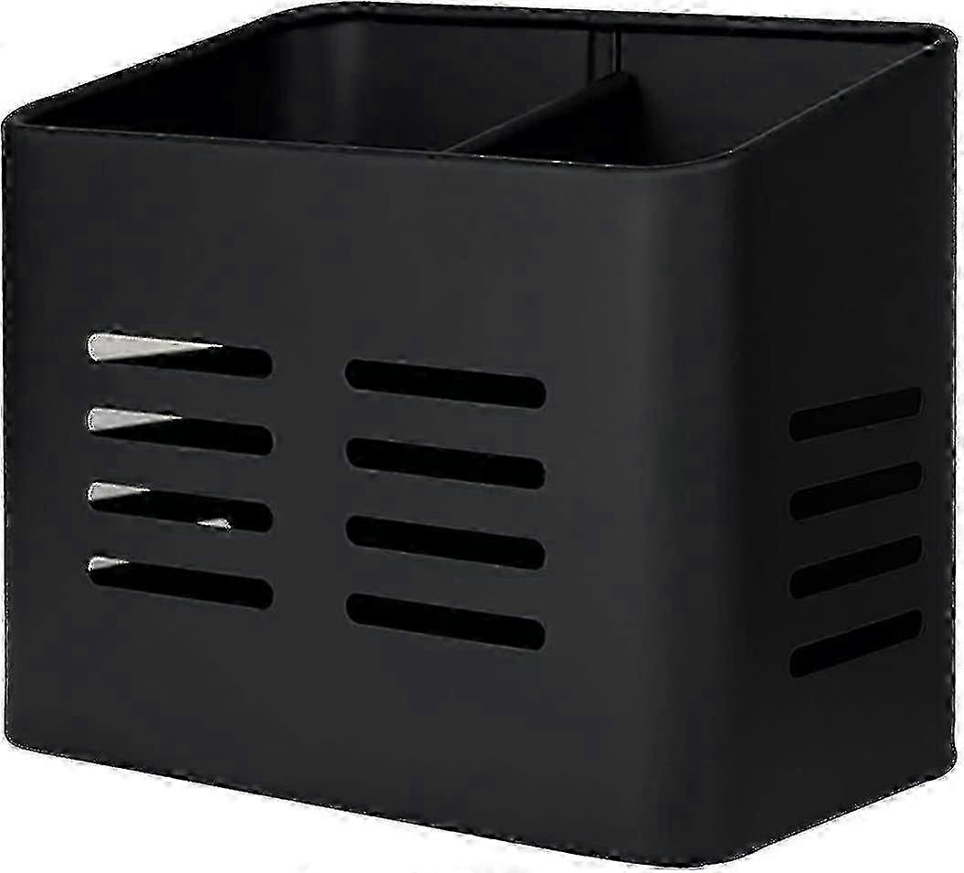 Black Compartment Metal Cutlery Box with Drip Tray, Measuring 9 X 16 X 13.5cm, Ideal Vertical Tool Organizer for Kitchen Countertop and Dini