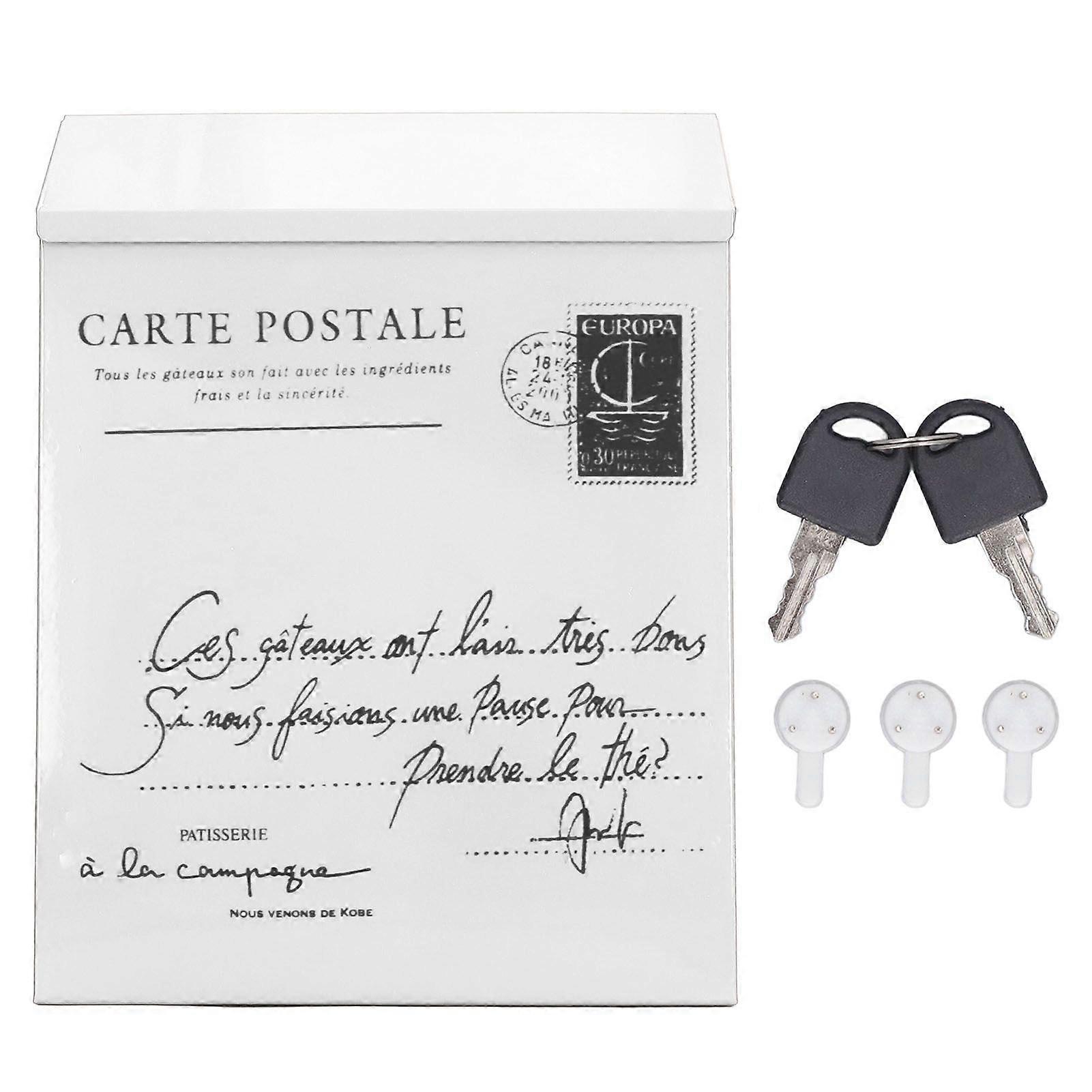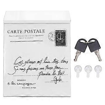 Iron Mailbox Wall Mounted Rustic Style Locked with 2 Keys 3 Hooks Waterproof Suggestion Box for Home Office Small Letters in Beige
