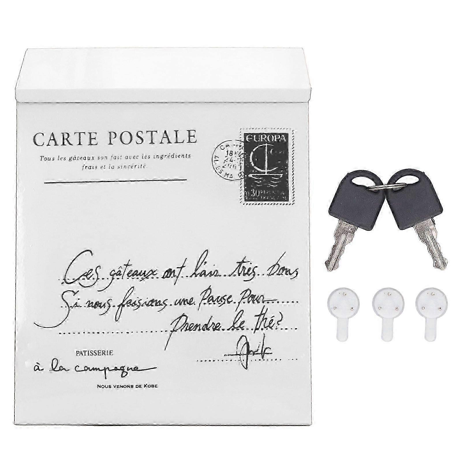 Iron Mailbox Wall Mounted Rustic Style Locked with 2 Keys 3 Hooks Waterproof Suggestion Box for Home Office Small Letters in Beige