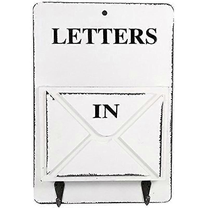 Wooden Mail Box Letter Rack Wall Mounted Mail Sorter Storage Box Key Hooks Standing Holder (white)