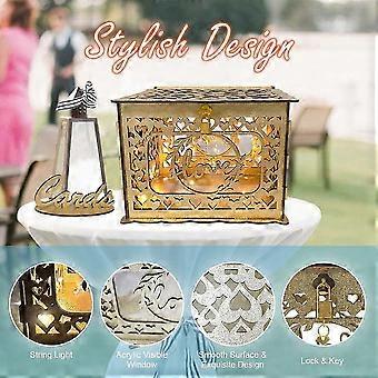 Wedding Card Box for Wedding Reception Glittery Wooden Card Boxes with Card Sign / Lock and String Light Gift Card Box Money Holder for Reception Anni
