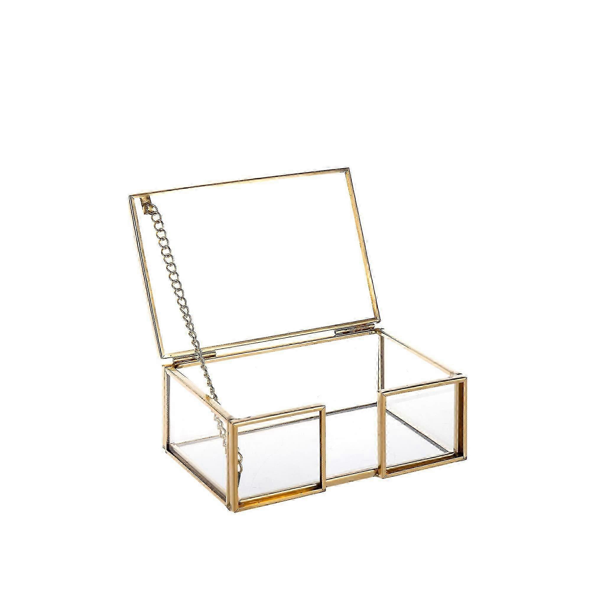 Gold Glass Business Card Box with Lid Name Card Display Holder Business Card Organizer Storage for Office Desk