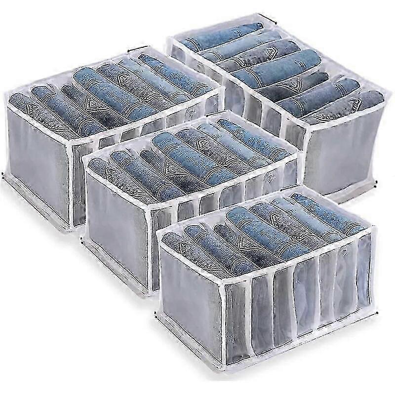 Jeans Storage Box, 4 Pieces Wardrobe Organizer, Jeans Storage Boxes, Mesh Separator Box Clothes Drawer, for Pants, Jeans, Sweaters, T-Shirt, Trousers