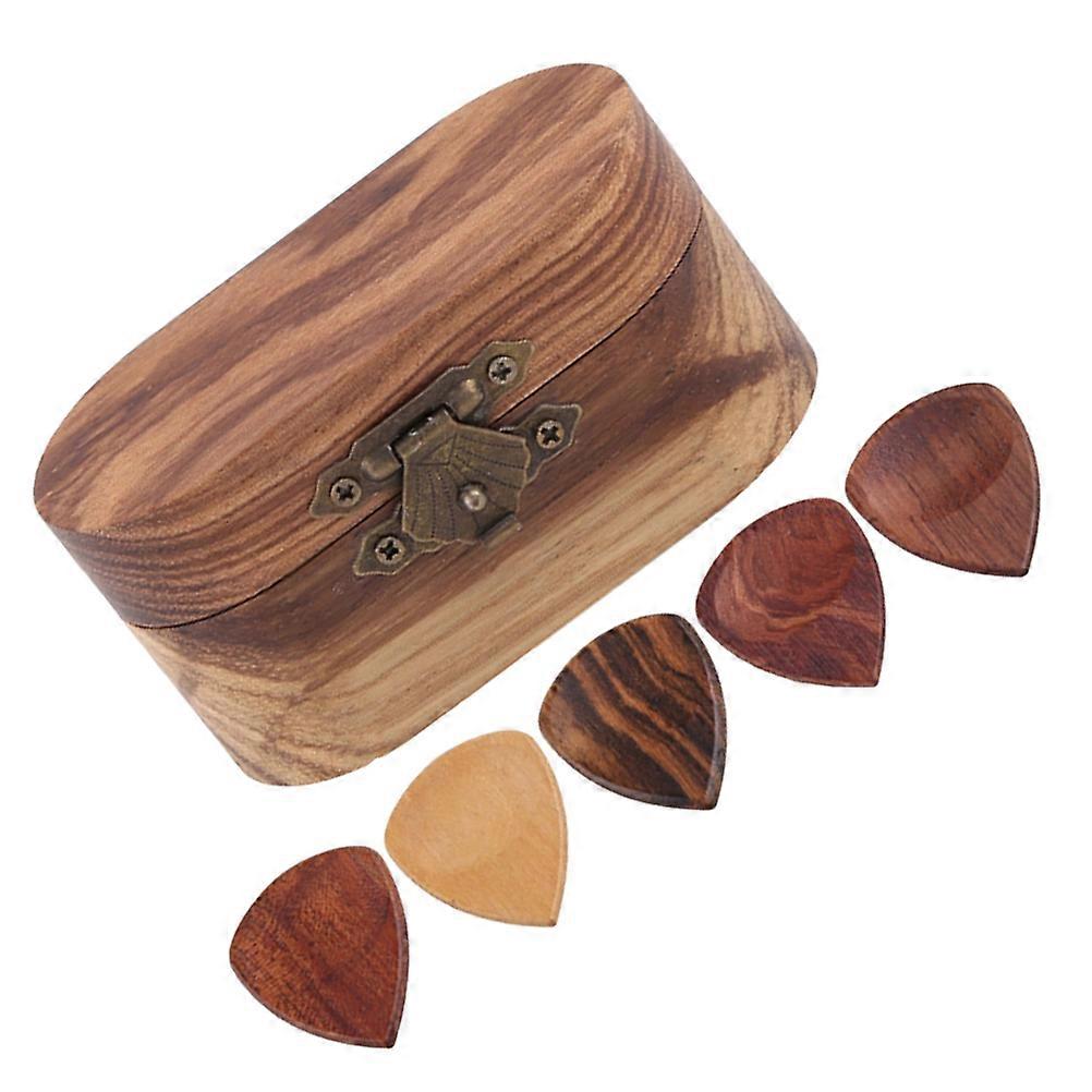 Wooden Guitar Pick Storage Box with Wood Picks for Electric, Acoustic Guitars and Ukuleles – Compact Portable Design with Sectioned Interior for Easy