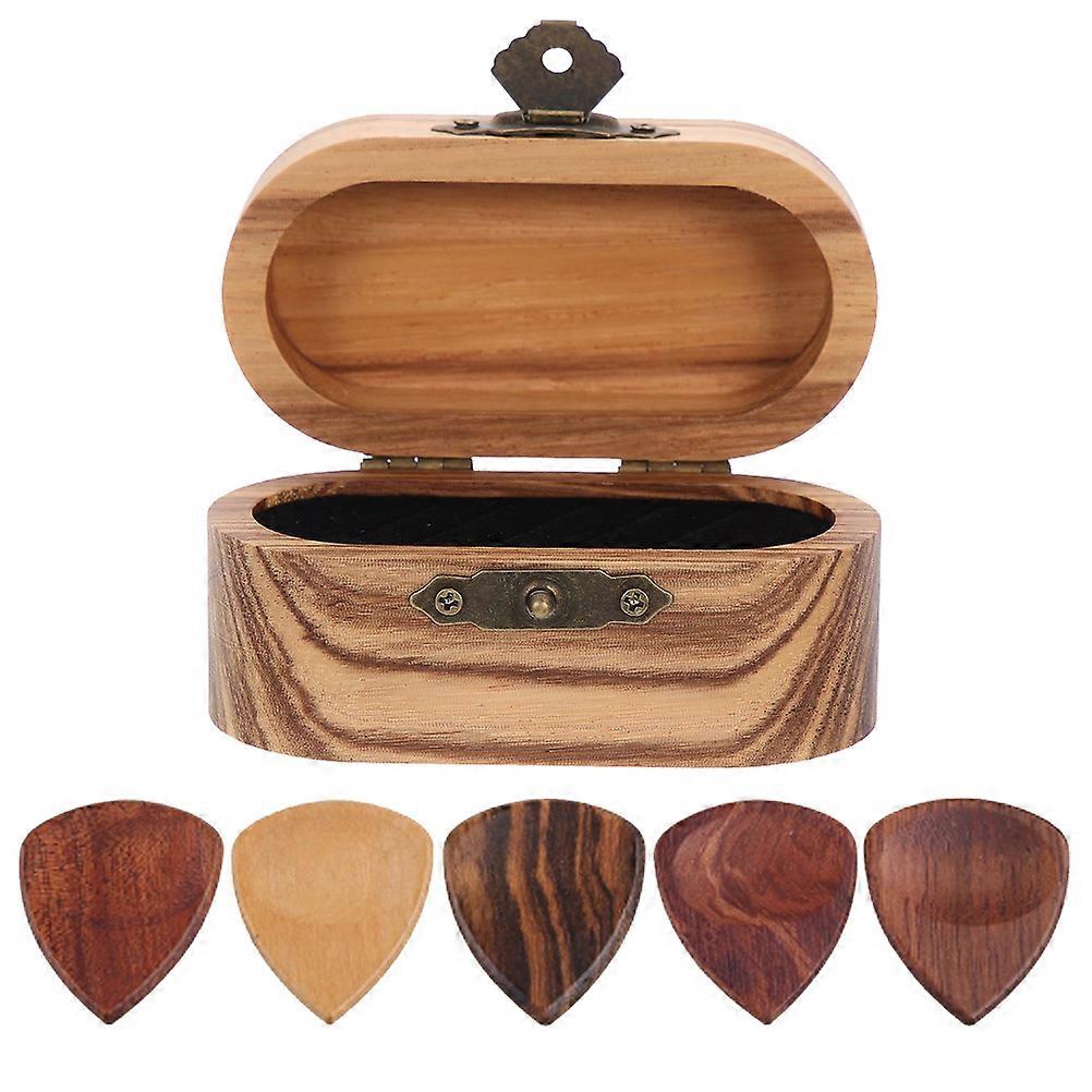 Wooden Guitar Pick Storage Box with Picks – Durable Accessory for Acoustic & Electric Guitars, Ideal for Travel, Concerts, and Music Events