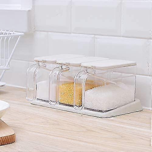 Clear Seasoning Box, 3 Pieces Clear Seasoning Storage Container For Spice Salt Sugar Cruet, Condiment Jars With Spoons
