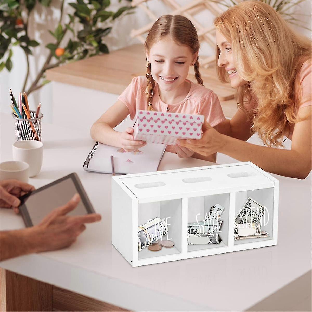 Wooden Give Save Spend Money Saving Box for Kids, Countertop Kid Piggy Bank for Daily Cash, Wall-Mou