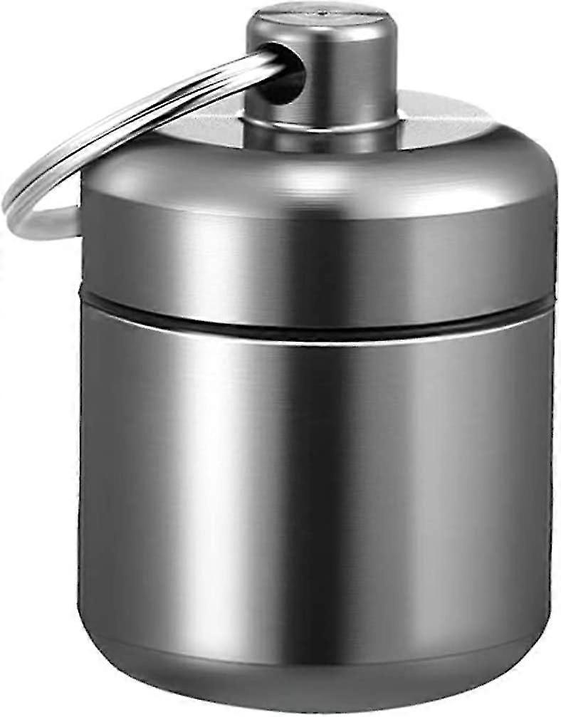 Small Pill Box Metal Pill Holder Keyring Waterproof Pill Organiser Round Portable Pill Container Small Capsules Pill Case Grey For Outdoor Travel Camp