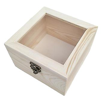 Natural Plain Wooden Box Unpainted Wood Storage Case Glass Lid 9x9x4.5cm