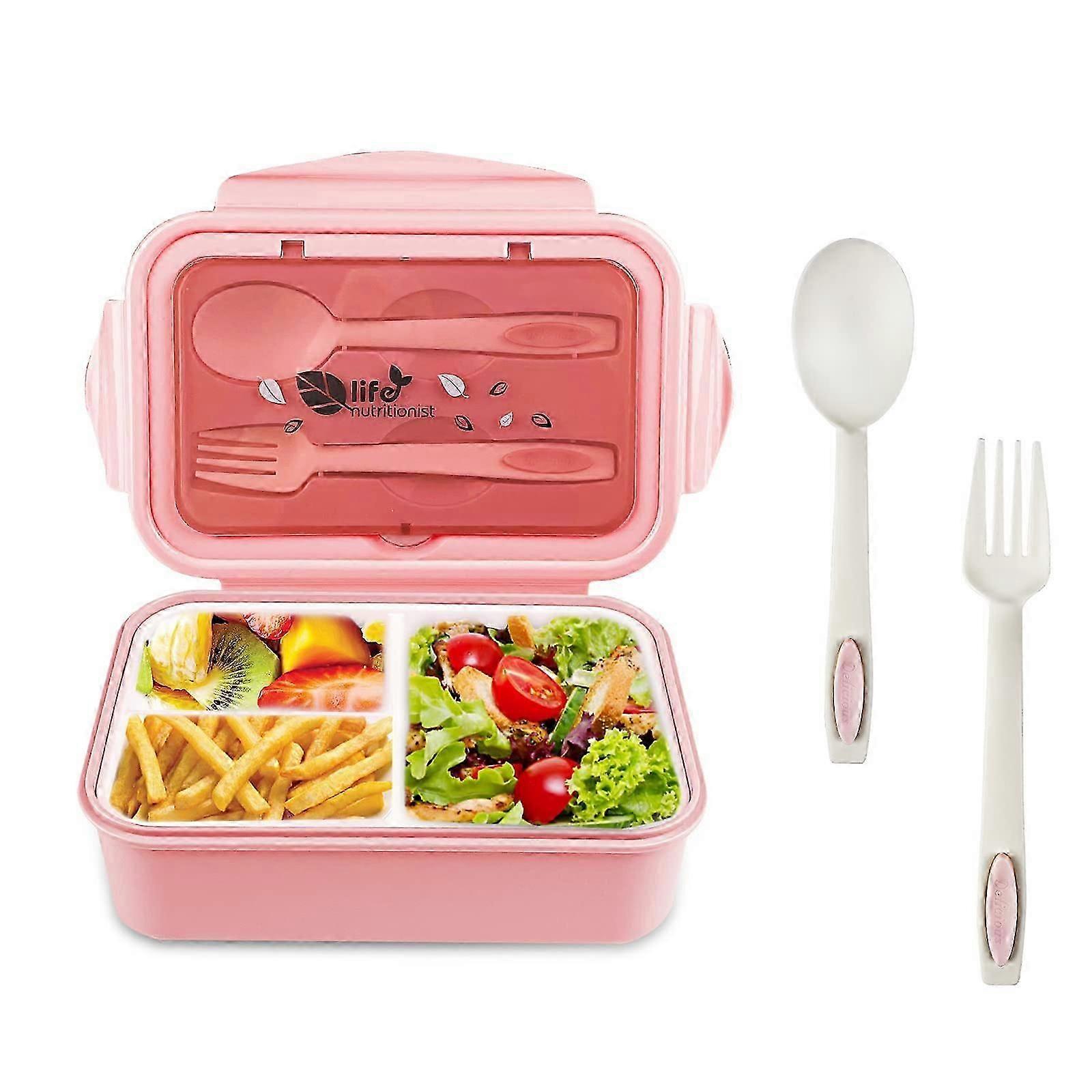 Lunch box with 3 compartments and spoon and fork - Leakproof lunch box - Microwave and dishwasher safe