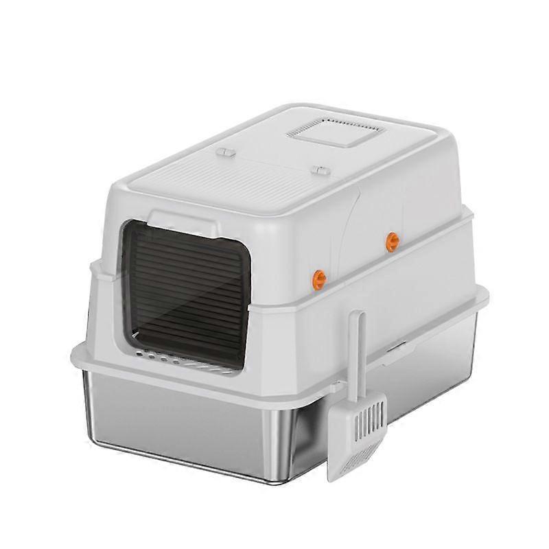 Extra Large Enclosed Cat Litter Box Stainless Steel Anti-splash Odor Control Easy Clean Cat Toilet With Scoop & Mat