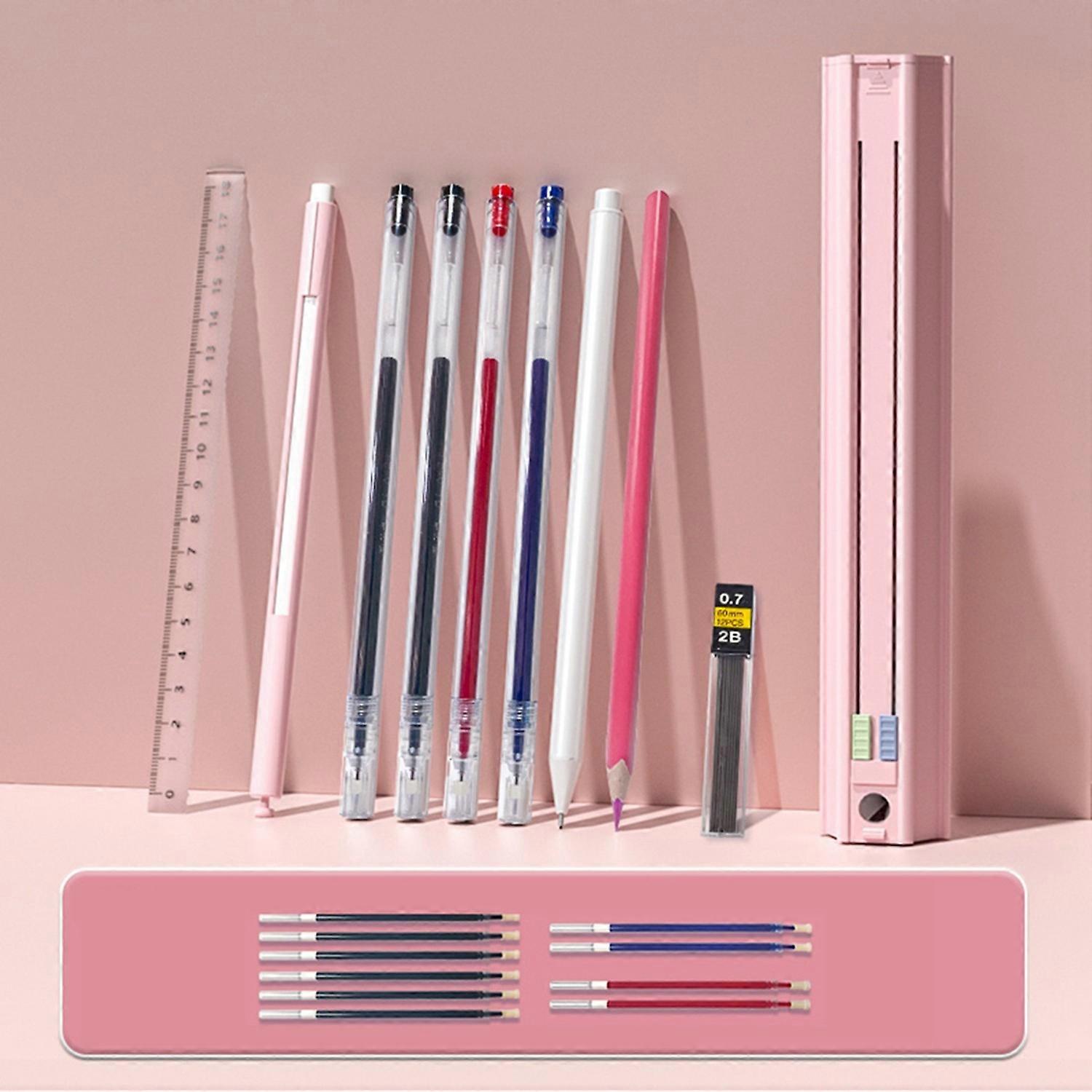 Feature: 1. 【Practical Design】The pencils can be removed from the 6-color buttons. The ruler and eraser are also easy to find in their fixed positions in the pencil case. And a detachable pencil sharpener at the bottom. It\u0027s fashionable and practical. 2. 【Durable and Easy to Clean】This pencil case is made of high-quality ABS material, sturdy and durable, with smooth texture and easy to clean. The pen design inside the box helps prevent breakage of the pens. 3. 【Lightweight \u0026 Portable】With its all-in-one design, it\u0027s convenient and lightweight without making other stationery dirty. It is a good choice for daily sketching. 4. 【Perfect Gift】An original creative gift for girls, boys, classmates, students or friends as graduation gifts, birthday gifts or Christmas presents. 5. 【Package Includes】You will receive a pencil case, which contains 6 pencils, an eraser, a ruler and 10 refills (6pcs black + 2pcs red + 2pcs blue) , 2 black gel pens, 1 red gel pen, 1 blue gel pen, 1 automatic pencil 0.7mm, 1 pink pencil, 1 box of pencil leads to meet your child\u0027s basic learning needs for a day. Lightweight and portable, you can easily find suitable elements to improve learning efficiency. Specification: Specification: Pencil Box Size: 20x3cm Package Size: 22x4.5x3.8cm/8.6x1.7x1.4in Package Weight: 142g/5oz. Package List: 1 * Pencil Box 1 * Ruler 1 * Eraser 2 * Black Gel Pen 1 * Red Gel Pen 1 * Blue Gel Pen 10 * Pen Refills 1 * Automatic Pencil 0.5mm 1 * Pink Pencil 1 box of Pencil Refill Note: Due to the different monitor and light effect, the actual color of the item might be slightly different from the color showed on the pictures. Thank you Please allow 1-2cm measuring deviation due to manual measurement.