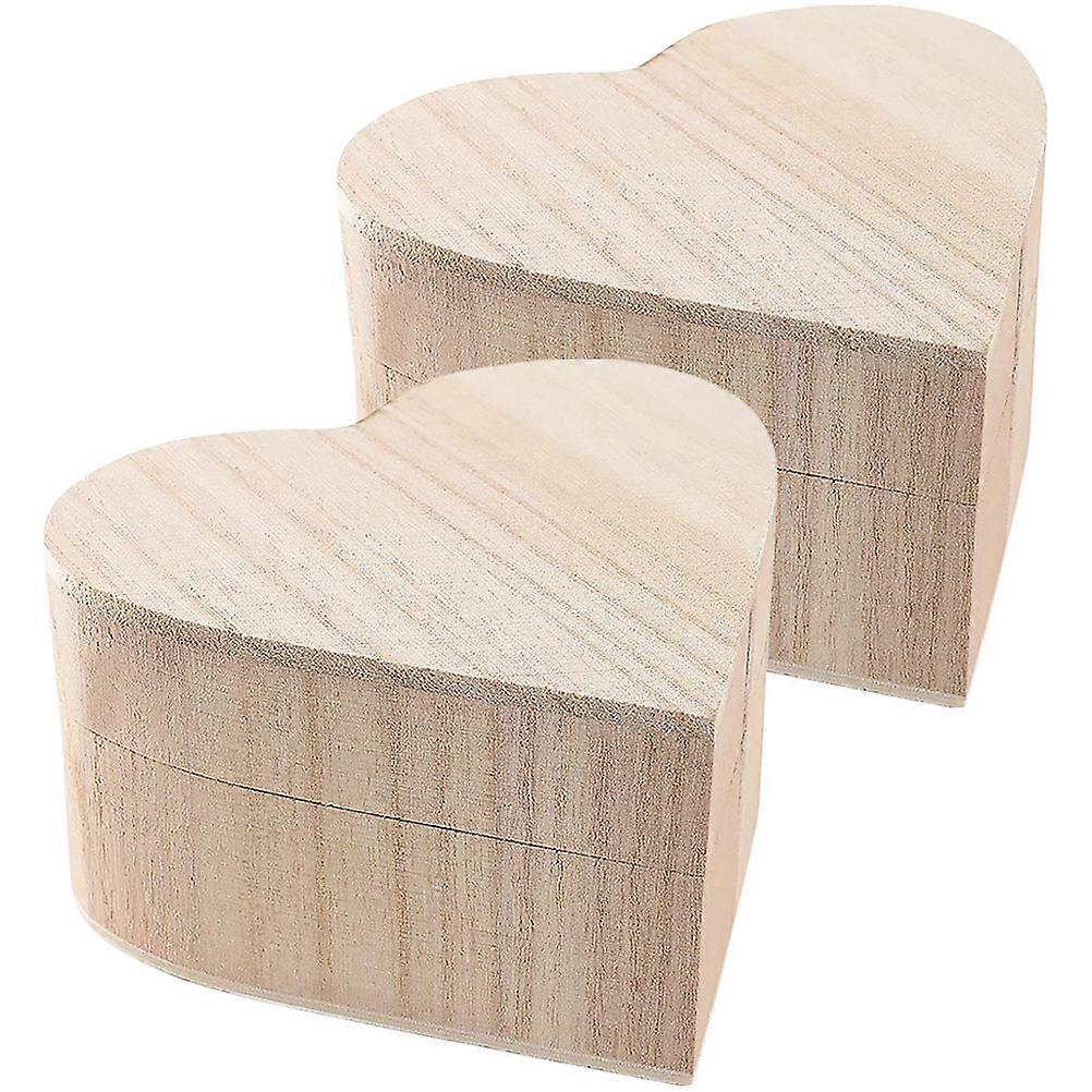 Decorative Jewelry Box Wooden Heart-Shaped Jewelry Cases Travel present Giving Beige Mini Size 2Pcs