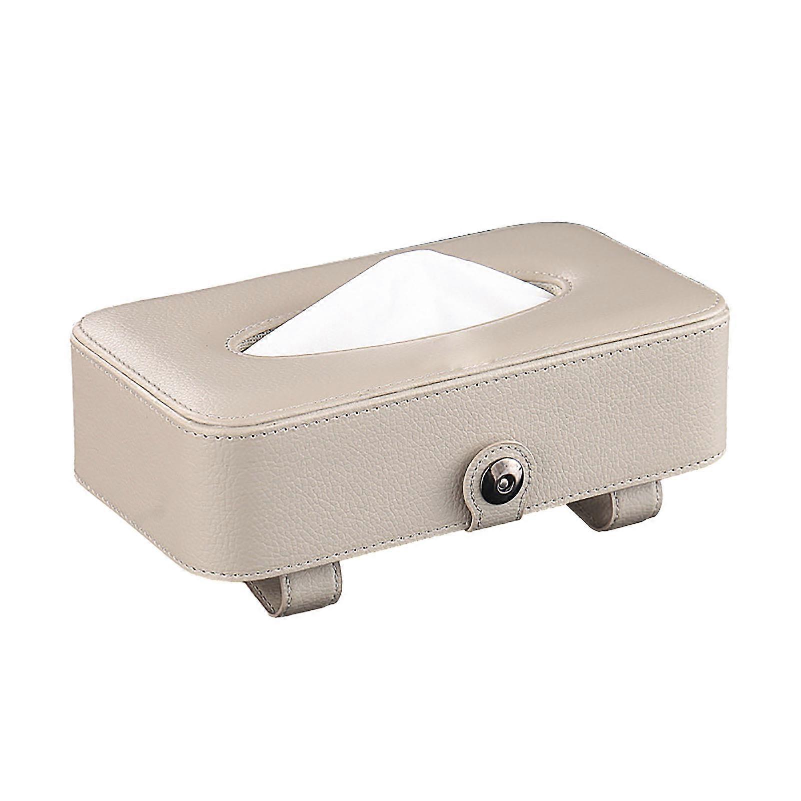 Car Tissue Box Artificial Leather Hanging Sun Visor Napkin Holder for Seat Back Skylight Glove Box Beige