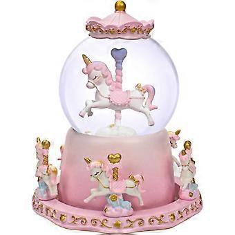 صندوق موسيقى دائري مع مصابيح LED متغيرة اللون ، قلعة في السماء ، 5 خيول ، هدايا عيد ميلاد / عيد الميلاد / عيد الحب