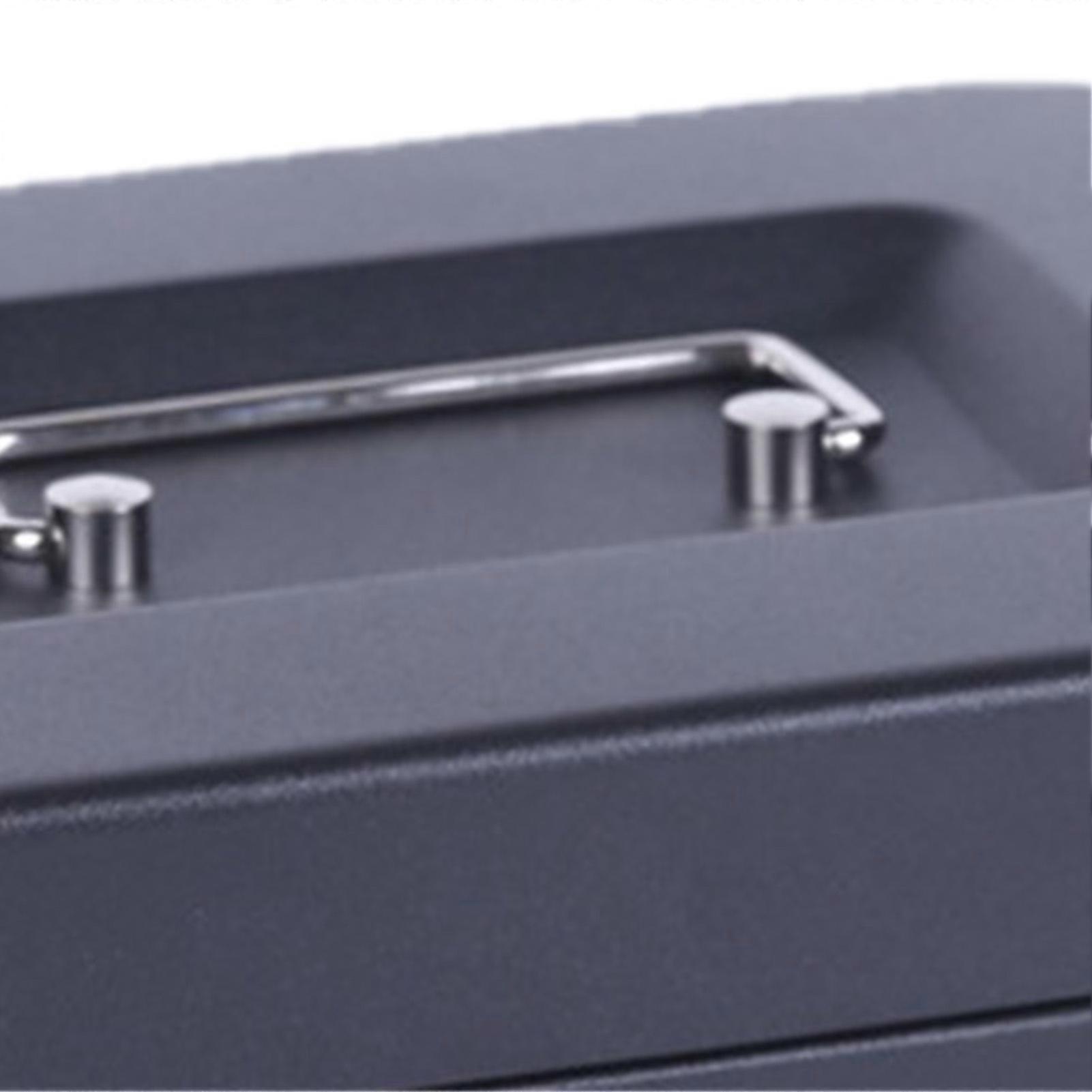Small Cash Box with Lock Multiple Compartments Opening Folding Stainless Steel Portable Money Box with Handle Black Frosted Oversized with Key