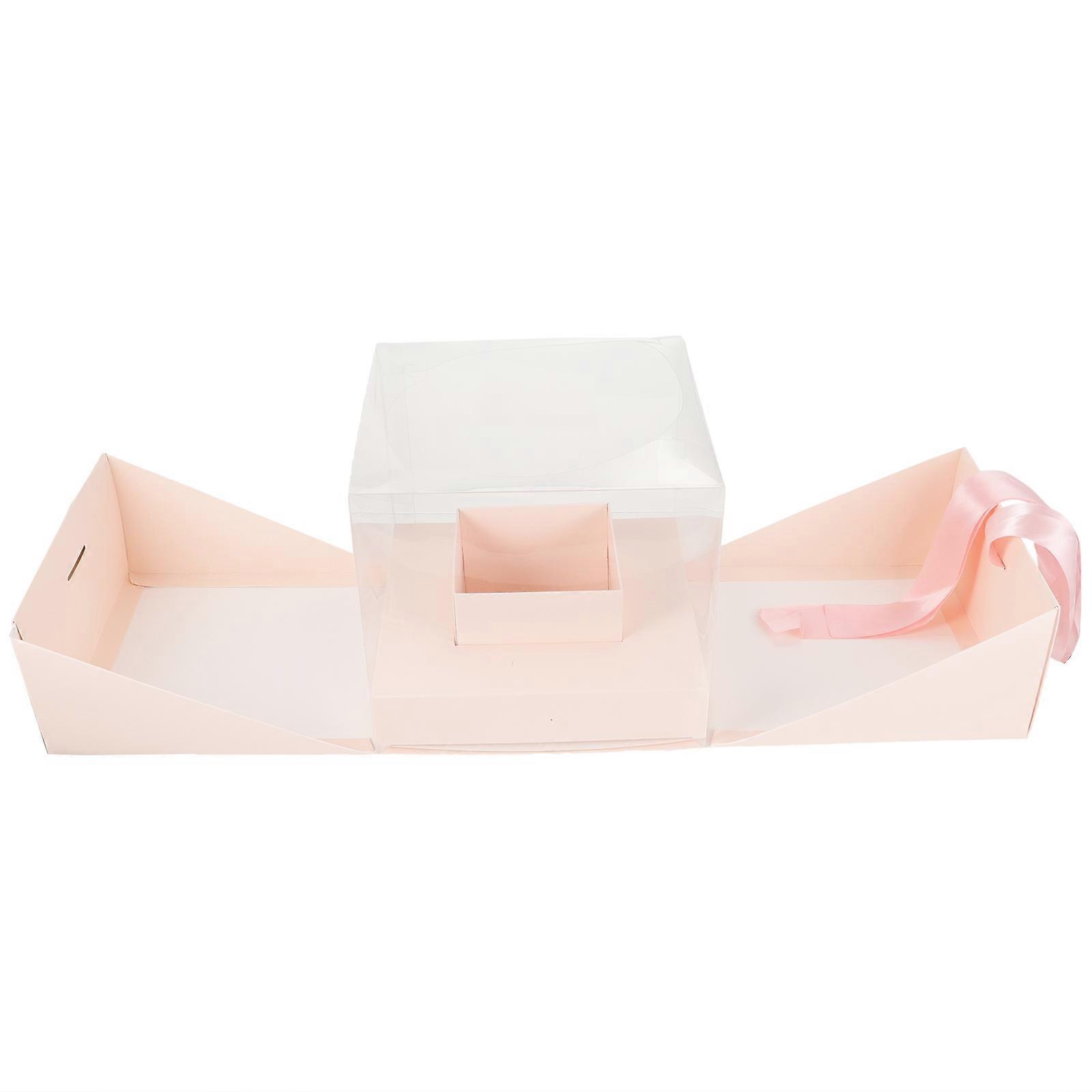 Transparent Gift Box For Florists Flower Bouquet Packaging 20x20x20cm Pink Decoration 1 Set