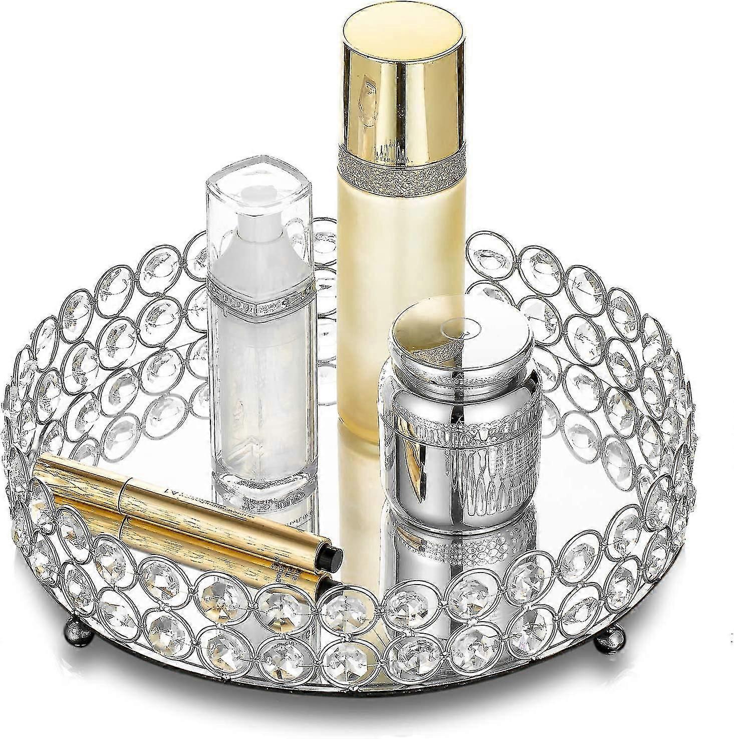 Vanity Tray Silver Trays Decorative, Makeup Holders for Dressing Table Trinket Tray Mirrored Tray 25cm Dia, Multifunctinal Dish for Perfume, Jewelry,