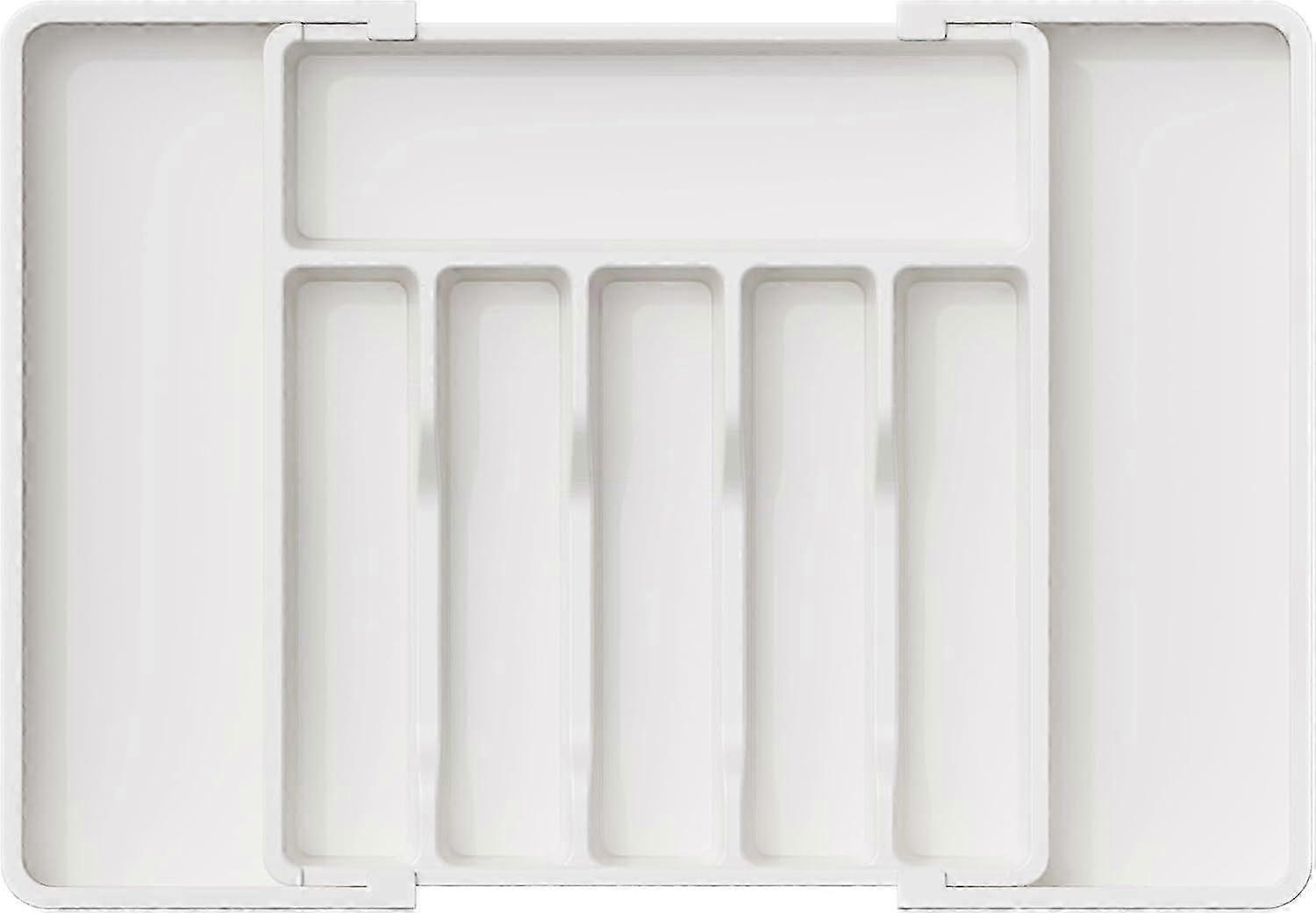 Expandable Utensil Tray for Kitchen, Adjustable and Flatware Holder, Compact Plastic Storage for Spoons Forks Knives, Large,White