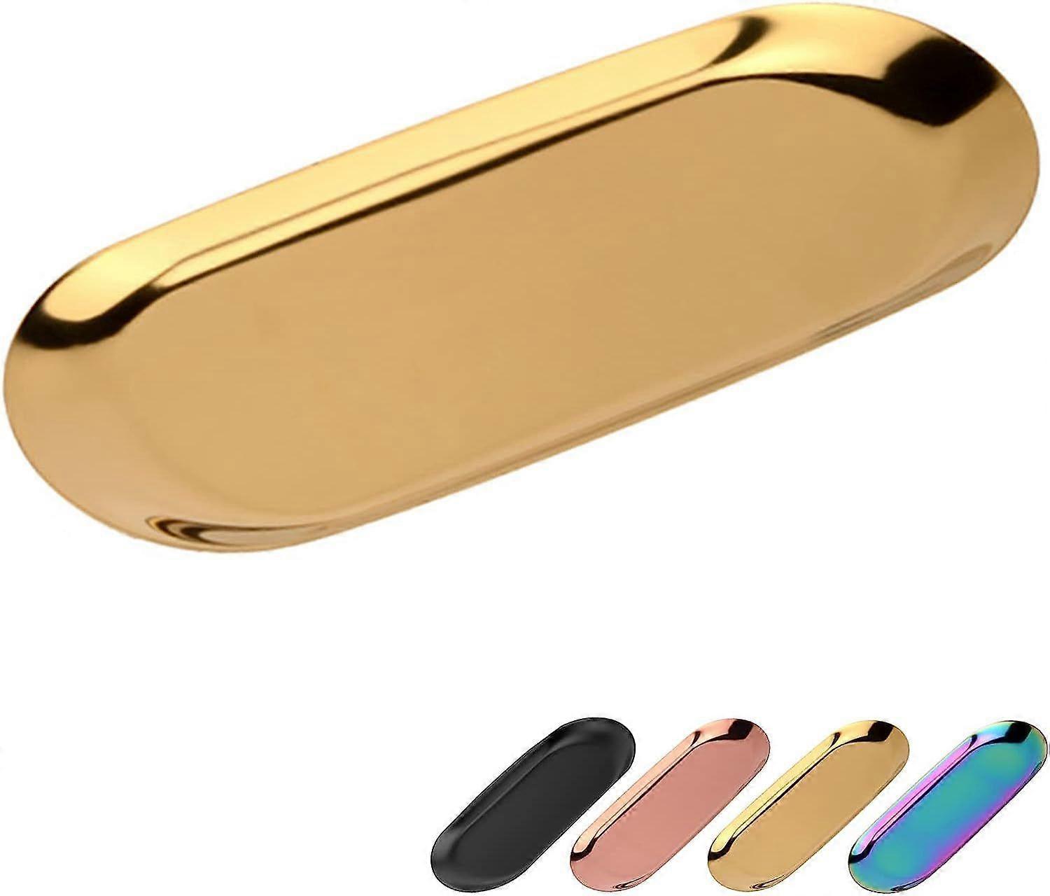 Oval Tray, Oval Cosmetic Tray, Stainless Steel Storage Tray, for Jewellery Storage, Snacks, Tea Tasting, Candles, Plates - 23 x 9.5 cm
