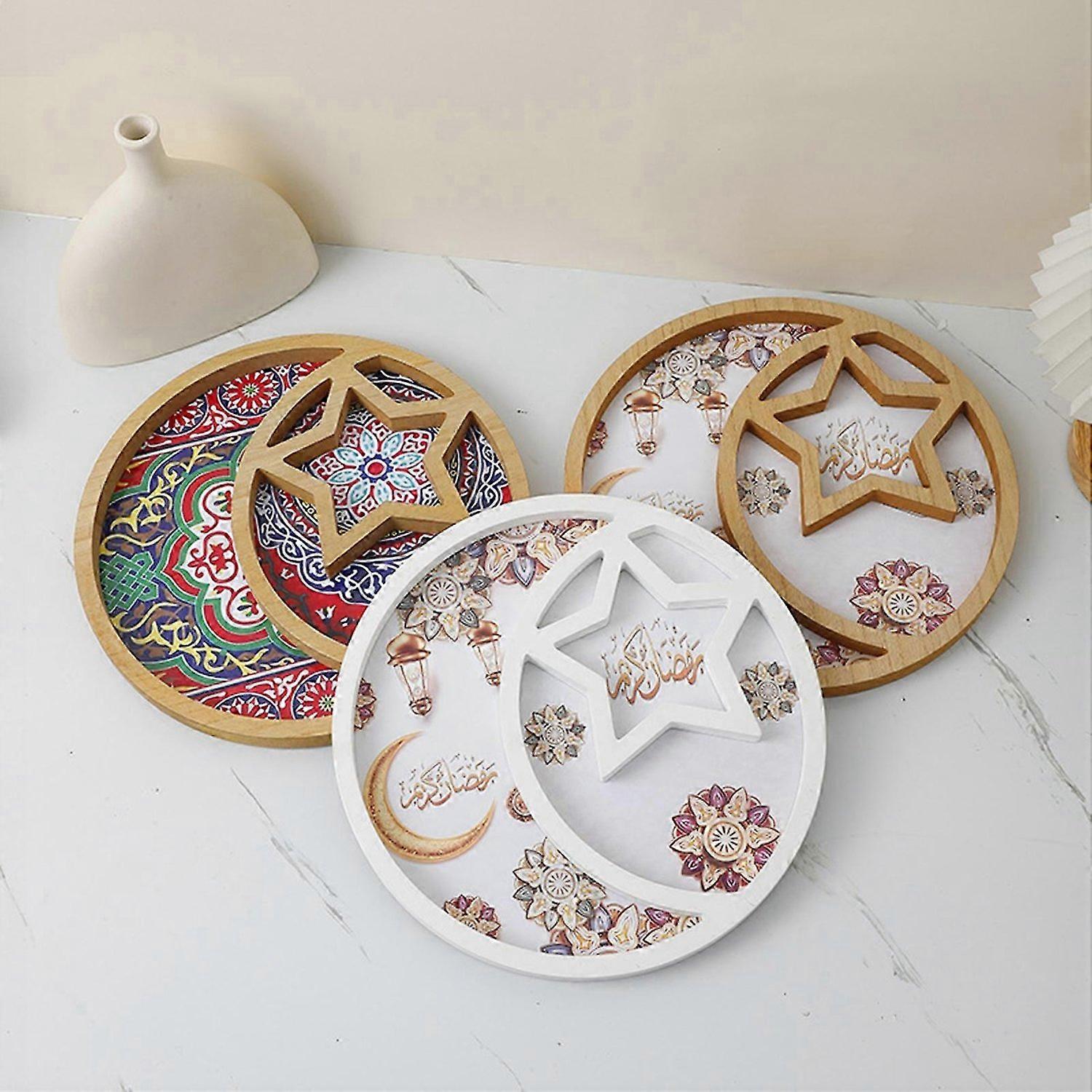 Wooden Eid Mubarak Dessert Tray, Moon Star Wooden Plate Tray, Dessert Food Fruit Storage Tableware f