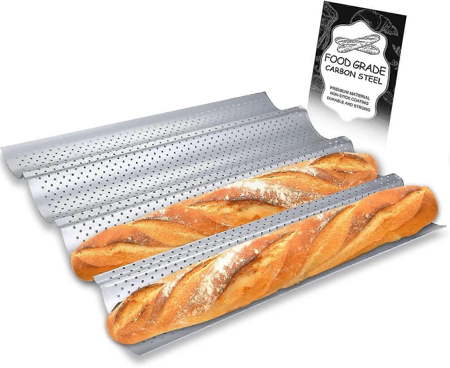 French Bread Ba Pan, Non-stick Perforated French Baguette Bread Pan, 4 Wave Loaves Loaf Bake Mold Toast