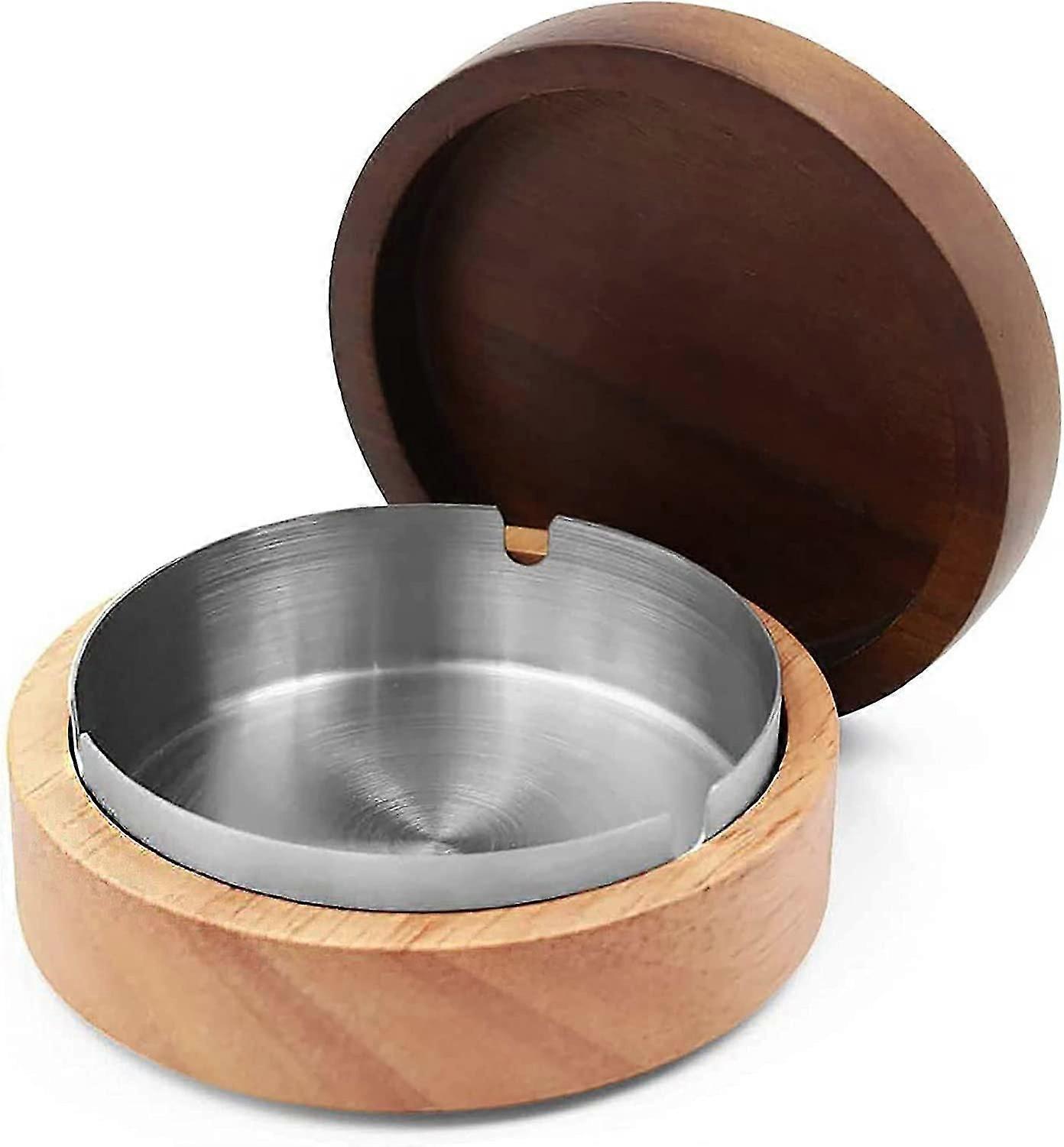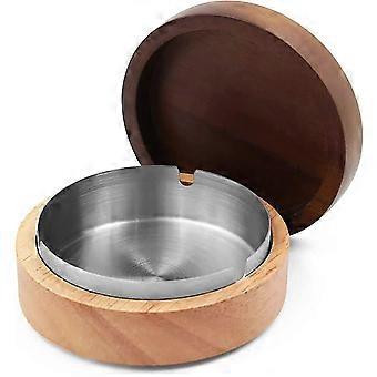 Windproof Ash Tray For Weed With Lid - Large, Cigarette Ashtray Wood With Stainless Steel Liner For Outdoors And Indoors Use, Smoking Ashtray