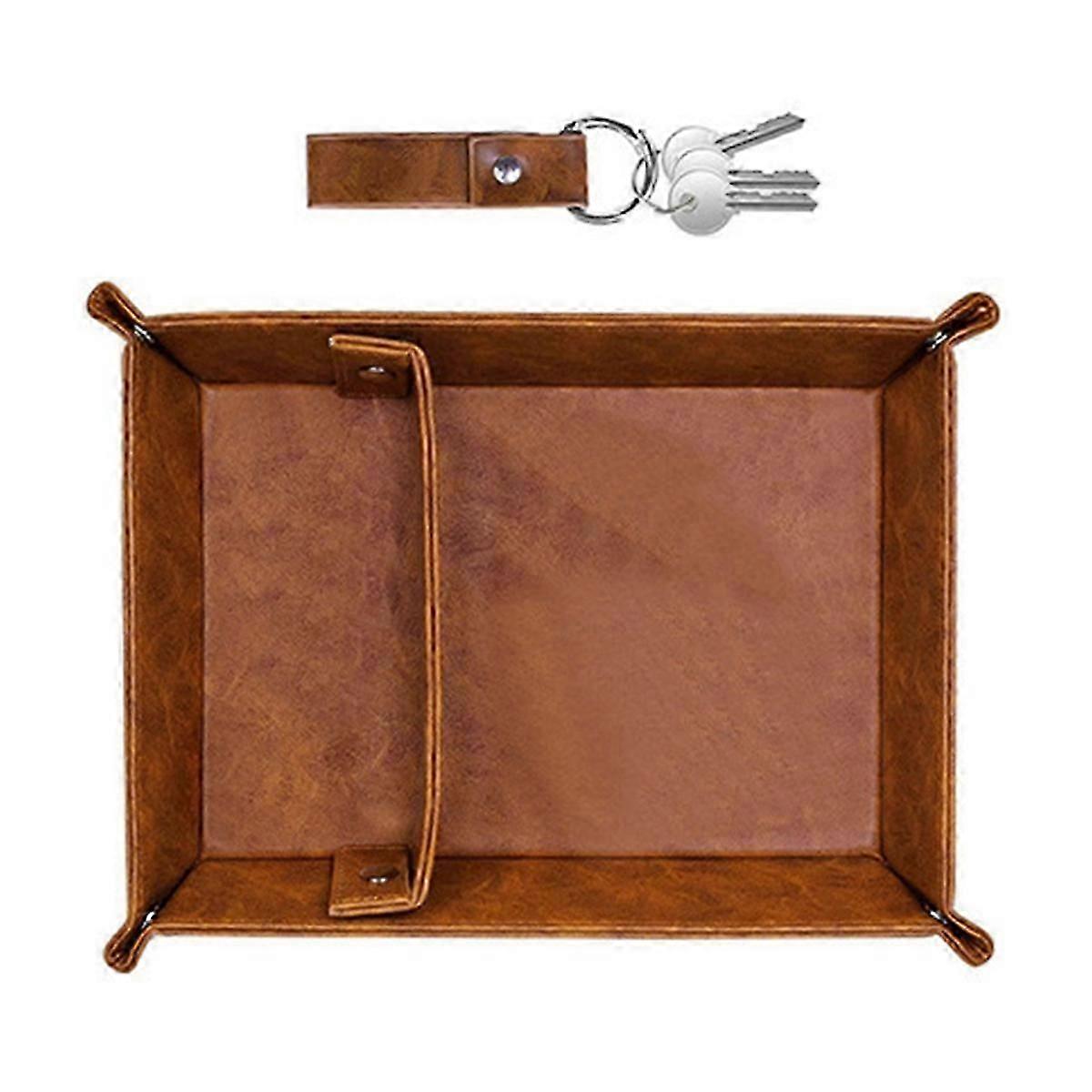 Enhance your home organization with our versatile PU Leather Valet Tray, designed specifically for men. This elegant tray is perfect for organizing everyday essentials such as keys, wallets, and jewelry, making it an ideal addition to any nightstand, desk, or bathroom counter. The tray features practical dividers that help segregate items, ensuring everything is neatly arranged and easy to access. Its sleek design not only serves a functional purpose but also adds a touch of sophistication to your space. Whether at home or in the office, this catchall tray is a must-have for keeping small items organized. Colour: A black / B brown Material:PU leather Package Contents: 1 * Valet Tray 1 * Keychain Only the above package content, other products are not included. Note: Light reflection and different displays may cause the color of the item in the picture a little different from the real thing. The measurement allowed error is +/- 1-3cm.