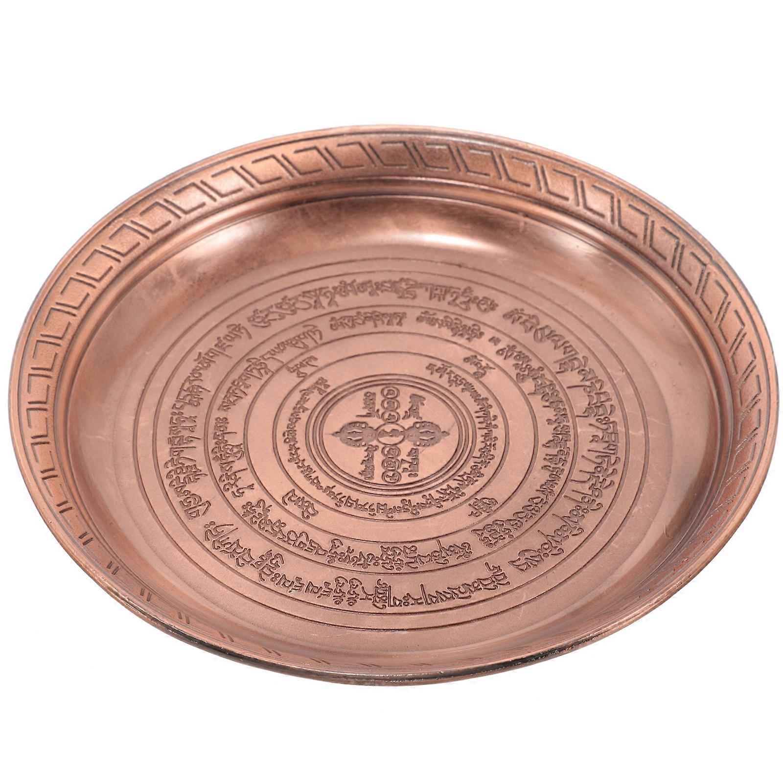 Metal Offering Tray for Rituals & Ceremonies Vintage Style Worship Dish with Retro Patterns, Ash Container for Incense Sticks, Home & Temple