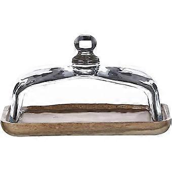 Square Wooden Cake Tray with Glass Lid, Dessert Tray, Tea Tray with Snack Plate