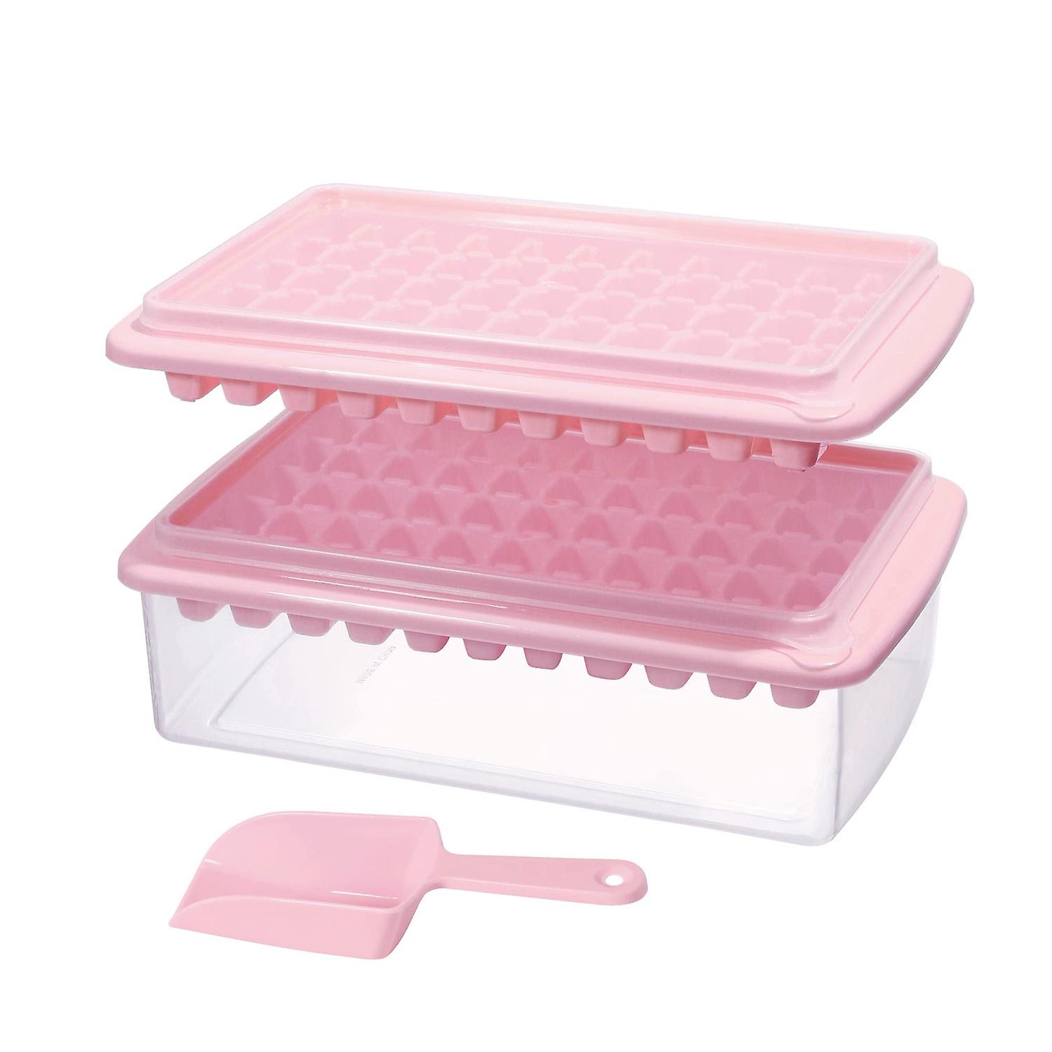 Ice cube tray with lid and freezer, pink tray, storage container, spoon. Soft and durable plastic, B