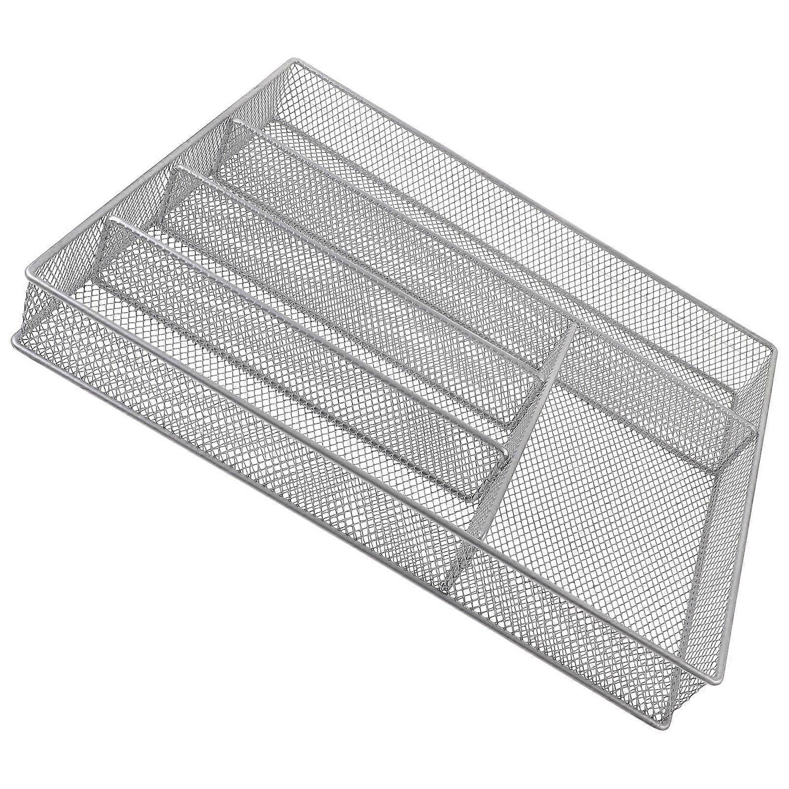 Dark Grey Iron Silverware Drawer Organizer Tray with Mesh Design for Kitchen Storage 7.5 x 4.3 inches