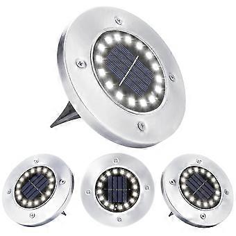 ضوء الحديقة الشمسي ، 4 قطع 16 LED تعمل بالطاقة الشمسية في الهواء الطلق ضوء أرضي مقاوم للماء من الفولاذ المقاوم للصدأ راحة الأضواء ، أبيض بارد