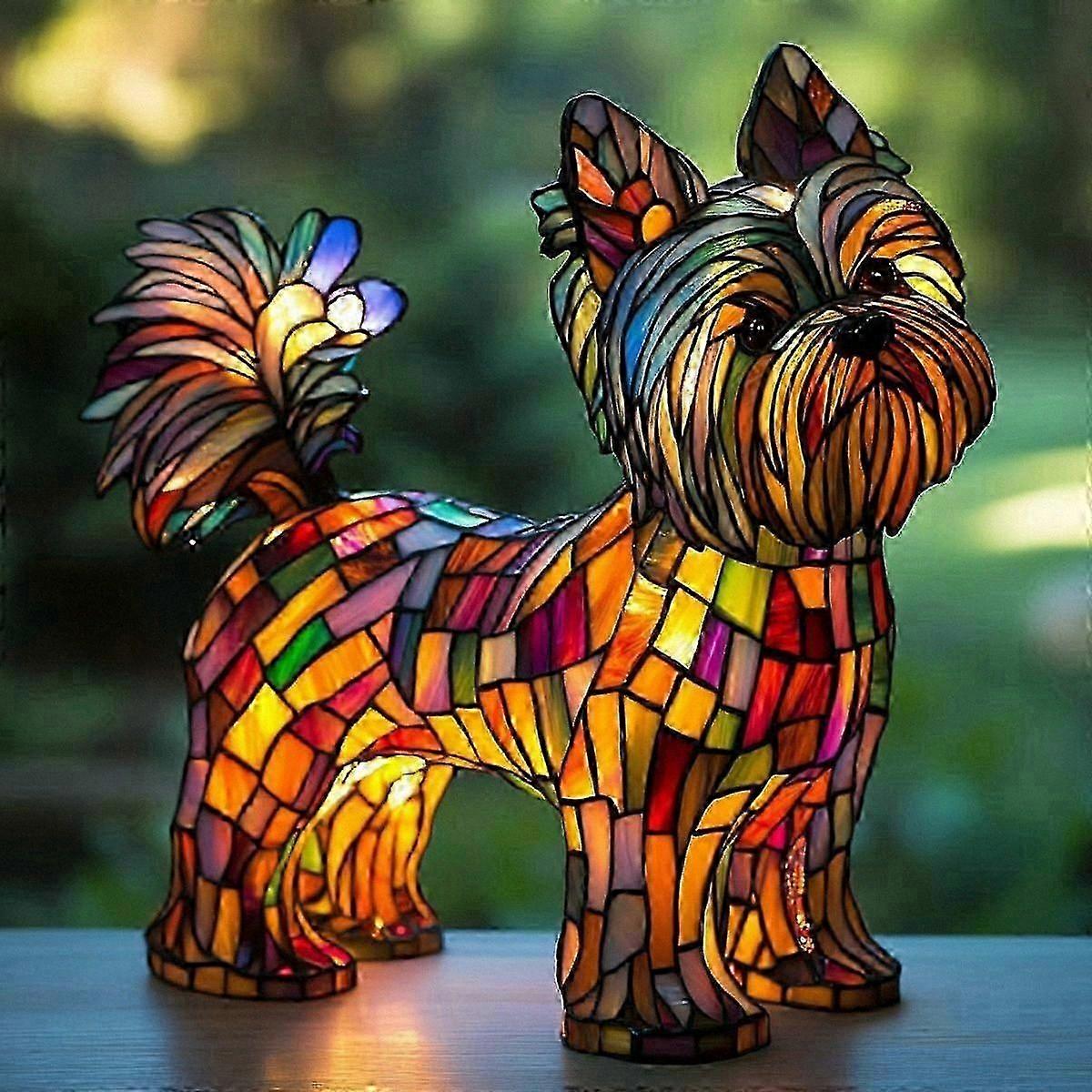 Hand-Painted Resin Dog Art Night Light, Yorkshire Terrier Design, Decorative Stained Lamp for Home ambiance Lighting
