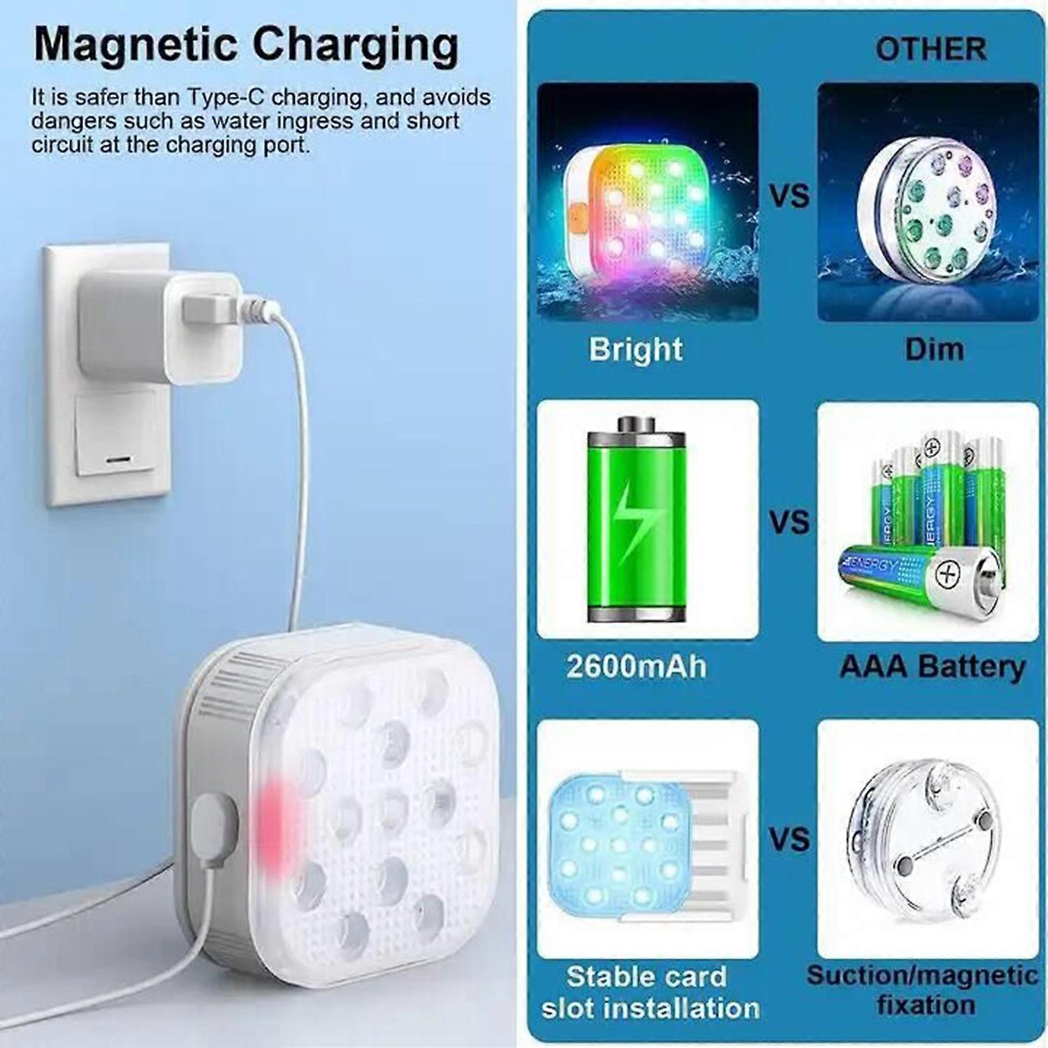 Color Charging LED Pool Light IP68 Waterproof Bathtub Light Dimmable Fountain Light with Remote Cont