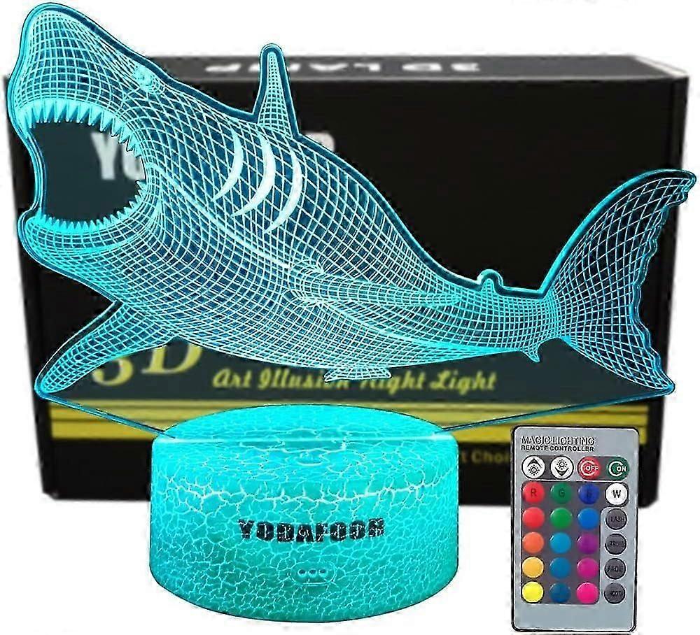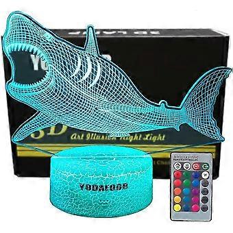 Shark Night Light, 3D Illusion Megalodon Night Lamp for Kids, 16 Color Changing with Dimmable Remote Control, Toy Shark