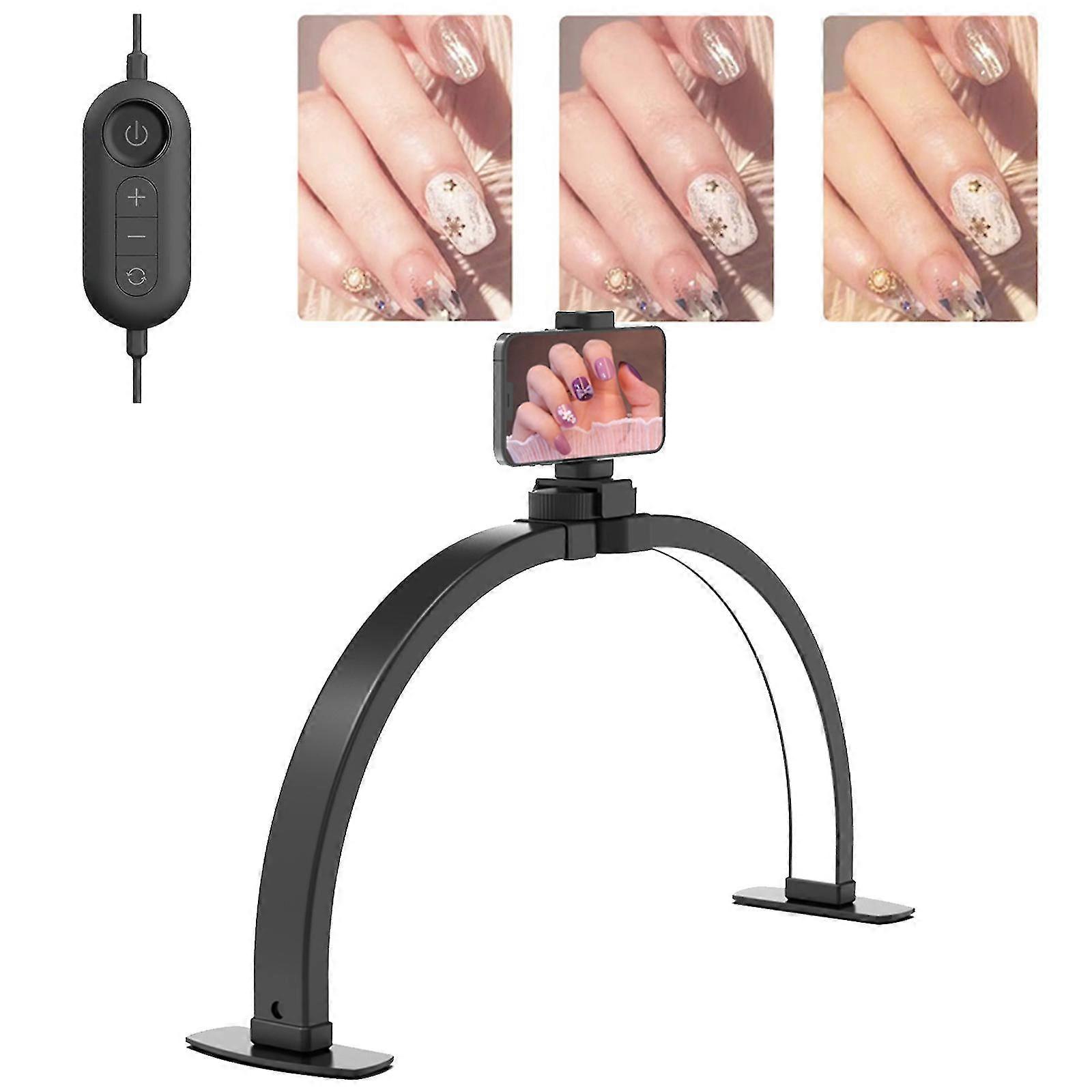 Foldable Half Moon Light for Nail Desk, 29 Inch Led Nail Tech Desk Lamp, Half Moon Table Lamp with Phone Holder, Esthetician Lash Light for Eyelash Ex