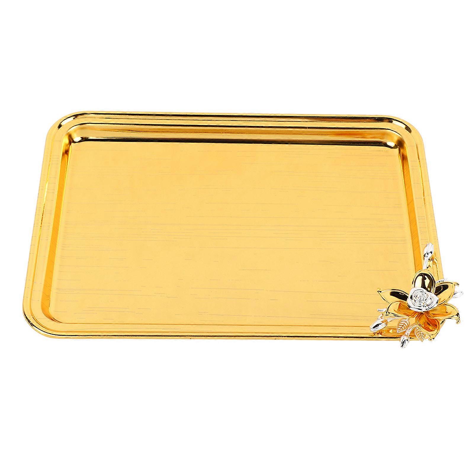 Table Serving Tray European Style Light Luxury Decorative Rectangular Food Service Tray with Floral Decor for Living Room KTV Hotel Gold L