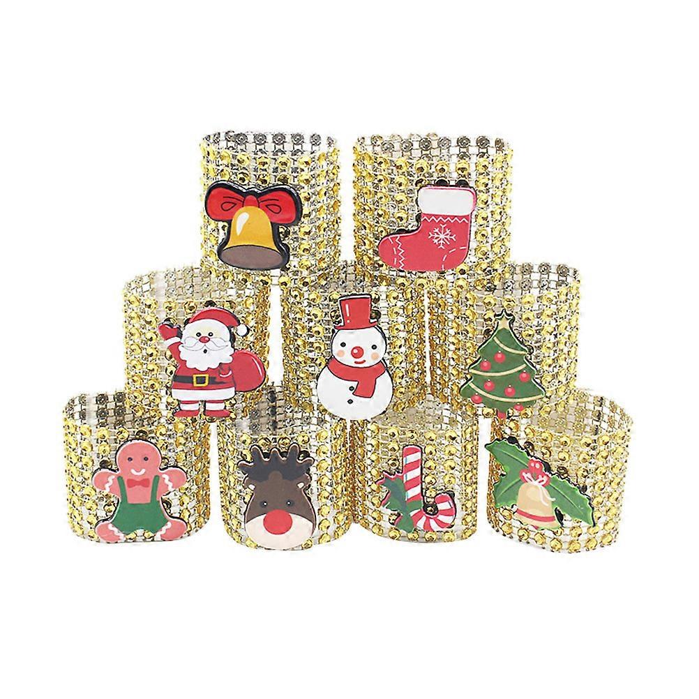 Table Decoration Buckle Plastic Luxury Christmas Party 9Pcs Golden Round