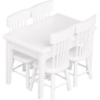 طاولة طعام مصغرة طاولة بيضاء كرسي دمية أنيقة محمولة صغيرة مجموعة أثاث خشبي للفتيات 5 قطع هدية للأطفال