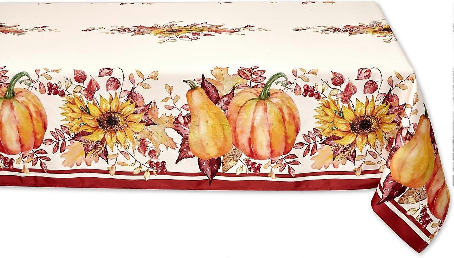 Brilliant Autumn Double Border Thanksgiving Tabletop, Fall Pumpkin and Sunflower Cottage Print Easy Care Fabric, Joy of Harvest, Tablecloth, 60 x 84 R