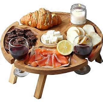 طاولة نزهة خشبية مستديرة قابلة للطي ، طاولة نبيذ محمولة في الهواء الطلق للتخييم أو الحديقة أو الشاطئ ، 24x11 سم