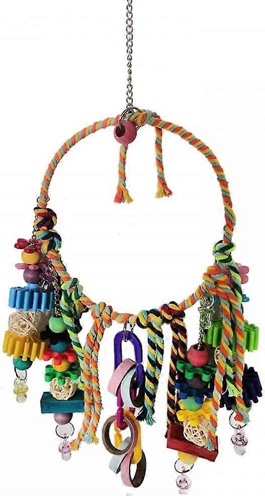 Quantity:1 Welcome to my store, Hope you have a pleasant shopping trip! Features:1. Parrot birds sit on top of a swing to hang, swing and spin toys for various physical activities to improve training balance. Can help parrots to reduce destructive behavior and prevent anxiety.2. The swing is made up of many different shapes of hanging pendants in a variety of colors to meet the natural needs of parrots and birds, sharpening their beaks and exercising their claws and muscles.3. Easy to Install: With movable hooks, easy to install on top of the bird cage or in front of the window.Specifications:Color: colorLarge cotton rope loop diameter : about 17cm/6.7 inch,Height: about 45cm/18.0 inchPackage List:1 X Bird Rope Ring Swing PerchNotes:1. Due to the difference between different monitors, the picture may not reflect the actual color of the item. We guarantee the style is the same as shown in the pictures.2. Please allow 1-2cm slight dimension difference due to different manual measurement. Parrot birds sit on top of a swing to hang, swing and spin toys for various physical activities to improve training balance. Can help parrots to reduce destructive behavior and prevent anxiety. The swing is made up of many different shapes of hanging pendants in a variety of colors to meet the natural needs of parrots and birds, sharpening their beaks and exercising their claws and muscles. Easy to Install: With movable hooks, easy to install on top of the bird cage or in front of the window. Widely Used: Suitable for anchovies, parakeets, parrots, parakeets, cone tails, pachyderms, macaws, gentoo parrots, sun cones, lovebirds, small and medium-sized birds. SHOP WITH CONFIDENCE: To provide you with the highest quality service, If you have any question, please feel free to contact us.We will provide after-sales service until you are satisfied. See more product details Parrot birds sit on top of a swing to hang, swing and spin toys for various physical activities to improve training balance. Can help parrots to reduce destructive behavior and prevent anxiety. The swing is made up of many different shapes of hanging pendants in a variety of colors to meet the natural needs of parrots and birds, sharpening their beaks and exercising their claws and muscles. Easy to Install: With movable hooks, easy to install on top of the bird cage or in front of the window. Widely Used: Suitable for anchovies, parakeets, parrots, parakeets, cone tails, pachyderms, macaws, gentoo parrots, sun cones, lovebirds, small and medium-sized birds. SHOP WITH CONFIDENCE: To provide you with the highest quality service, If you have any question, please feel free to contact us.We will provide after-sales service until you are satisfied.