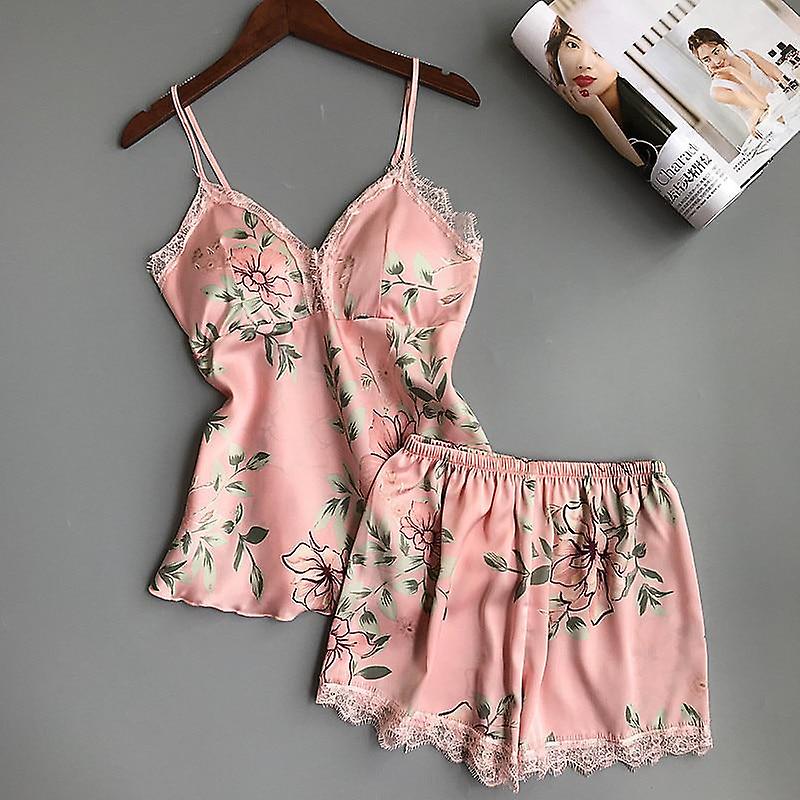 Printing Spaghetti Strap Women Pajama Set V-neck Sexy With Pad Female Summer Pajamas