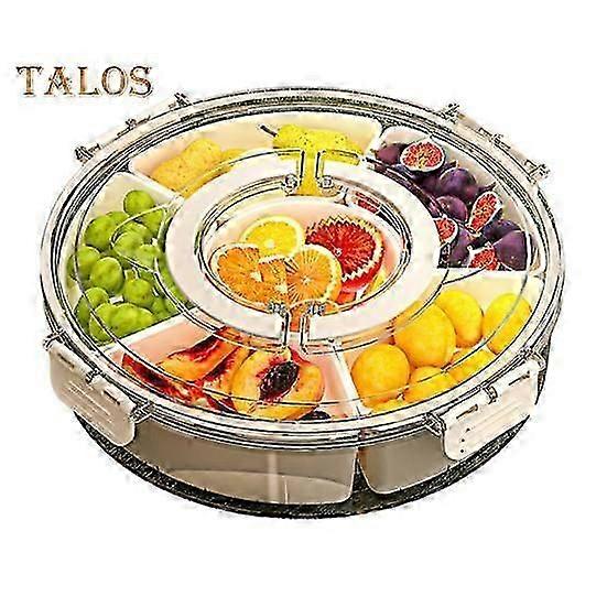 Versatile Usage: From fruits to nuts, this snack box is perfect for picnics, beaches, parties, and travel adventures. Innovative Spinning Tray: Enjoy the convenience of a 360-degree rotating tray with 6 compartments for neatly organizing various snacks. Premium Material: Crafted from high-quality food-grade materials, ensuring safety and durability within a temperature range of -20 degree Celsius to 60 degree Celsius. User-Friendly Design: Effortlessly organize candies, fruits, and nuts with the split tray featuring a lid for easy visibility and quick snack selection. Easy Maintenance: The simple design and removable compartments facilitate hassle-free hand washing to keep your snack box clean and hygienic. Introducing the versatile fruit plate multiple use snack box! Perfect for any occasion, this innovative spinning design features a 360-degree rotating tray with 6 compartments, ideal for neatly separating different snacks like fruits, nuts, or your favorite treats. Crafted from high-quality food-grade materials, this snack box container is designed for temperatures between -20 degree Celsius to 60 degree Celsius. To maintain its long-term performance, avoid using it in the dishwasher or microwave to prevent deformation. User-friendly and efficient, this snack box allows you to organize candies, fruits, and nuts with ease. The split tray with a lid ensures visibility and quick snack selection. Cleaning is a breeze with its simple design and removable compartments, making hand washing easy to keep your snack box deli containers clean and hygienic. Enjoy convenience and organization with this must-have snack accessory! Item Name: Fruit Plate Material: Plastic Features: Easy Maintenance, Versatile Usage, User-Friendly Design Size Details: L: 28cm, W: 28cm, H: 8cm(Approx.) Notes: Due to the light and screen setting difference, the item's color may be slightly different from the pictures. Please allow slight dimension difference due to different manual measurement. Package Includes: 1 x Fruit Plate