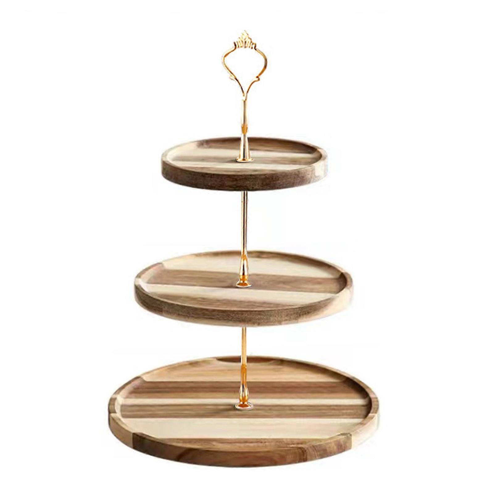 Snack Plate with Handle Removable Wooden Double Triple Layers Cake Stand Tea Party Supplies