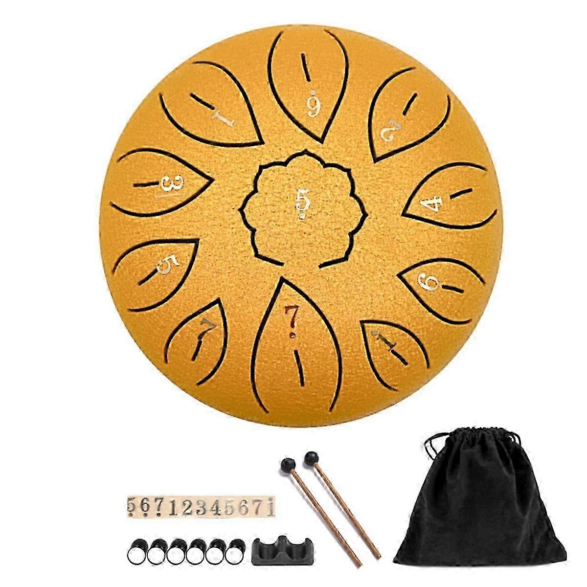 Rain Drum for Outside, Steel Tongue Drum 11 Notes 6 Inches Chakra Tank Drum Steel Percussion Padded Mallets Gold